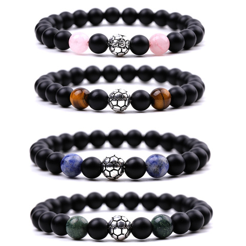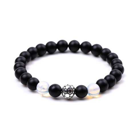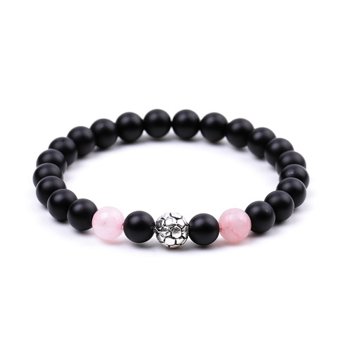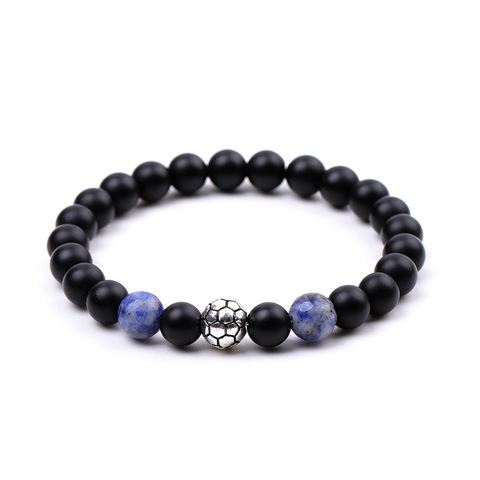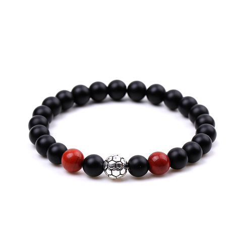 Fashionable Unisex Matte Black Onyx Bead Bracelet with Football Charm Men Beaded Stretch Bracelets SB3024S-8MM