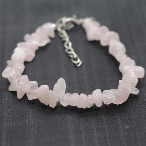Fashion Loose Natural Chip Rose Quartz Bracelet With Chains for Women 3~8MM Polished Gemstone Beads 10pcs/lot JOYA GIFT