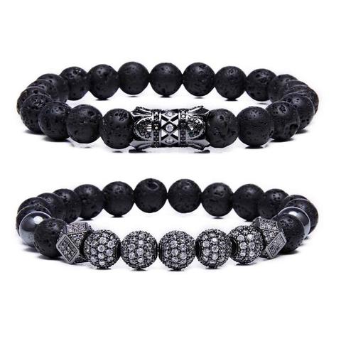Micro-inlaid Zircon Ball Volcanic Stone Set (2pcs) Bracelet Men and Women Friendship Essential Oil Diffusion Aroma Bracelet JOYA