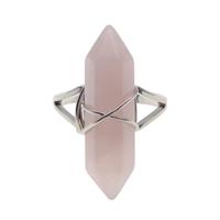 New Fashion Natural Gemstone Rose Quartz Hexagonal Prism Beads Wrapped Silver Wire Chakra Charms Crystal Rings