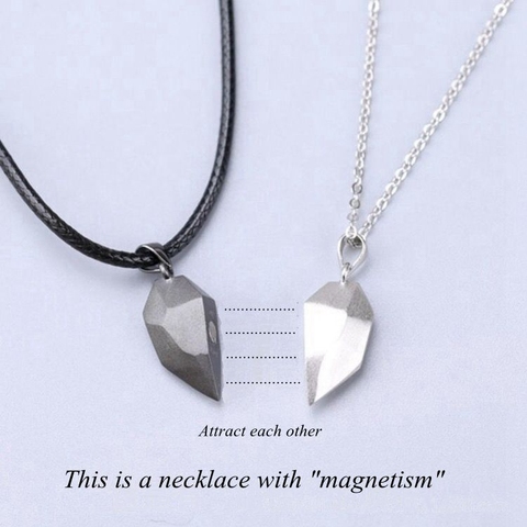 Fashion Two Pieces Multi-Colors Heart Pendant Necklaces for Couple Wishing Stone Creative Magnet Stone Lovers Necklace