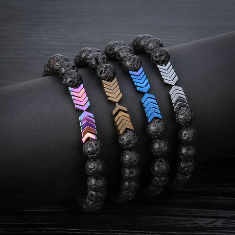 Volcanic Lava Rock Essential Oil Dispenser Bracelet - Men and Women Healing Balance Yoga Magnet Arrow Beads Bracelet JOYA GIFT
